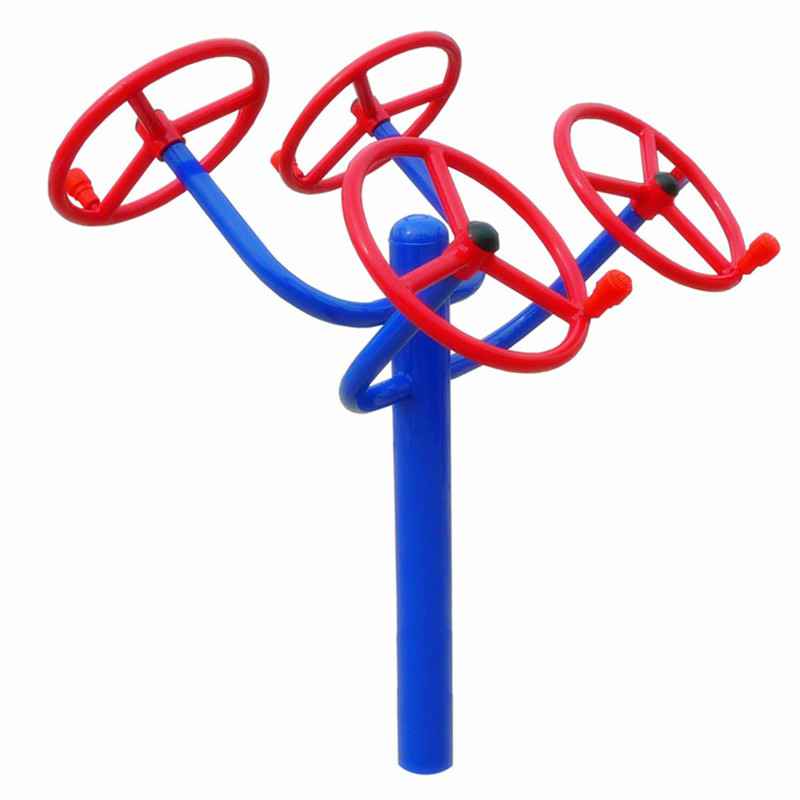 臂力训练器的功能是发展人体上肢各部肌肉力量。使用方法是两人分别在转轮两侧向对方相反的用力方向推动转轮边缘,以互相较力锻炼上臂肌肉。或人在转轮侧用力转动转轮边缘,以增强自身臂力。